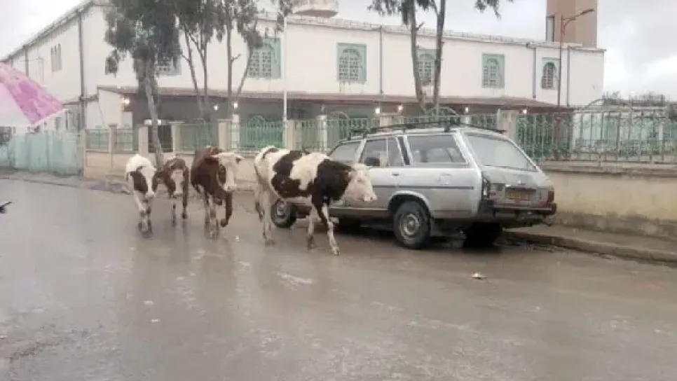 قساوة وبرد الشتاء لم تمنع هذه الأبقار من السير في طرقات شلالة العذاورة بالمدية، التي تحوّلت على رأي أحد سكانها إلى محمية طبيعية.