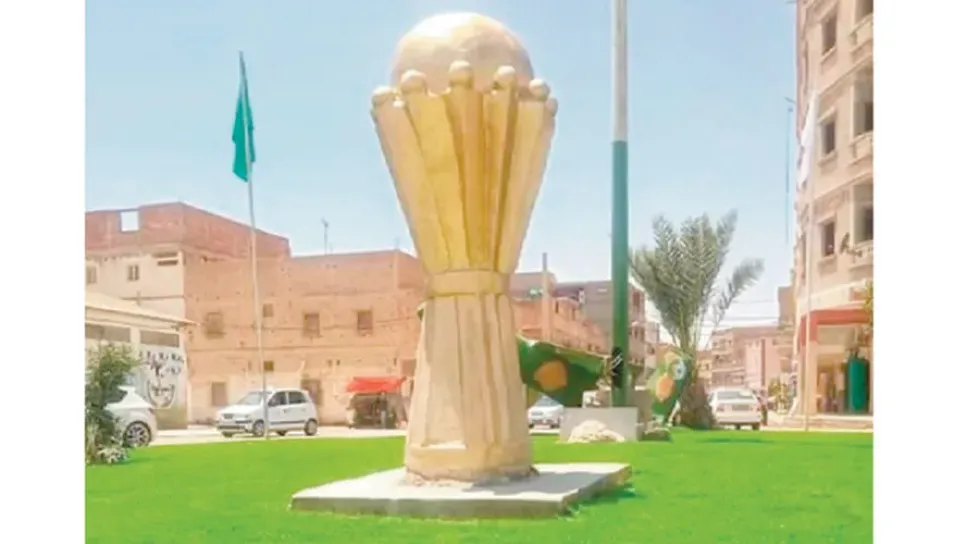 أبدع مجموعة شباب حي الحوزة بمدينة بسكرة وبإمكاناتهم الخاصة صنع مجسم كأس إفريقيا مفترق الطرق الذي يتوسط الحي، الذي تحول مزار للمواطنين تغطية.