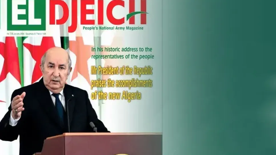 أعلنت مديرية الإعلام والاتصال لأركان الجيش الوطني الشعبي، اليوم الثلاثاء في بيان لها، عن صدور النسخة الانجليزية لمجلة "الجيش" ابتداء من شهر يناير الجاري. وأوضح ذات المصدر أنه "في إطار تطوير المنتجات الإعلامية للجيش الوطني الشعبي وفي سعي منها لتوسيع فئات القراء لمجلة الجيش, تعلن مديرية الإعلام والاتصال لأركان الجيش الوطني الشعبي عن صدور النسخة الإنجليزية لمجلة الجيش ابتداء من شهر يناير 2024".