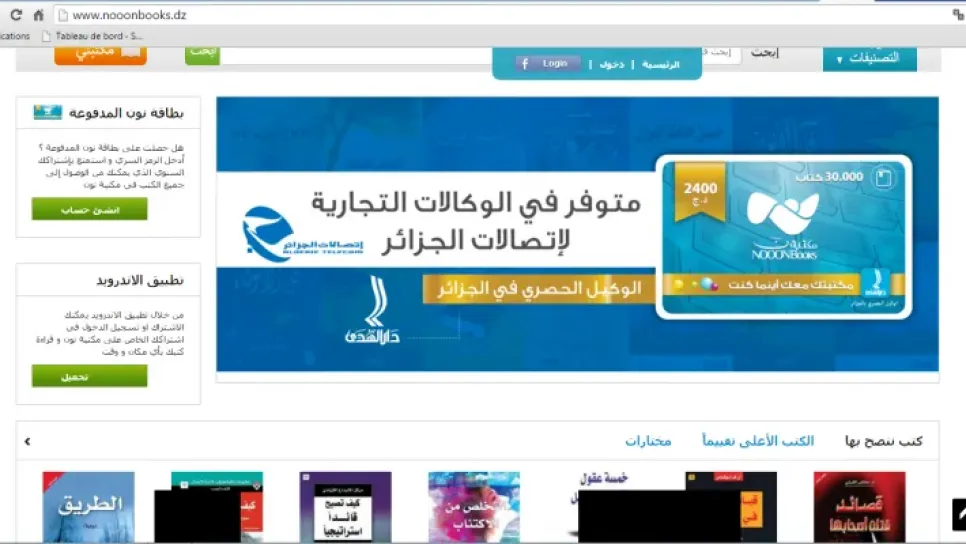 مكتبة نون الاكترونية أول مكتبة جزائرية في العالم الافتراضي باللغة العربية قدمتها دار الهدى للنشر بالشراكة مع اتصالات الجزائر خلال الصالون الدولي للكتاب في طبعته العشرين.المكتبة الافتراضية تحتوي على أزيد من 30 ألف مرجعا باللغة العربية موزعة على 14 تخصصا في مختلف المجالات العلمية والثقافية، من إنتاج 460 دار نشر عربية، ويخضع محتوى المكتبة للتحديث باستمرار مرة كل شهر.المشروع تم تجسيده بعد النجاح الذي حققه الموقع الأول « في مكتبتي » بنسختين واحدة للكتب العامة وأخرى للكتب الأكاديمية واستجابة لطلبات الزبائن في هذا المجال.ويمكن للمواطن الاشتراك في مكتبة نون مقابل 2400 دينار جزائري سنويا، ك...