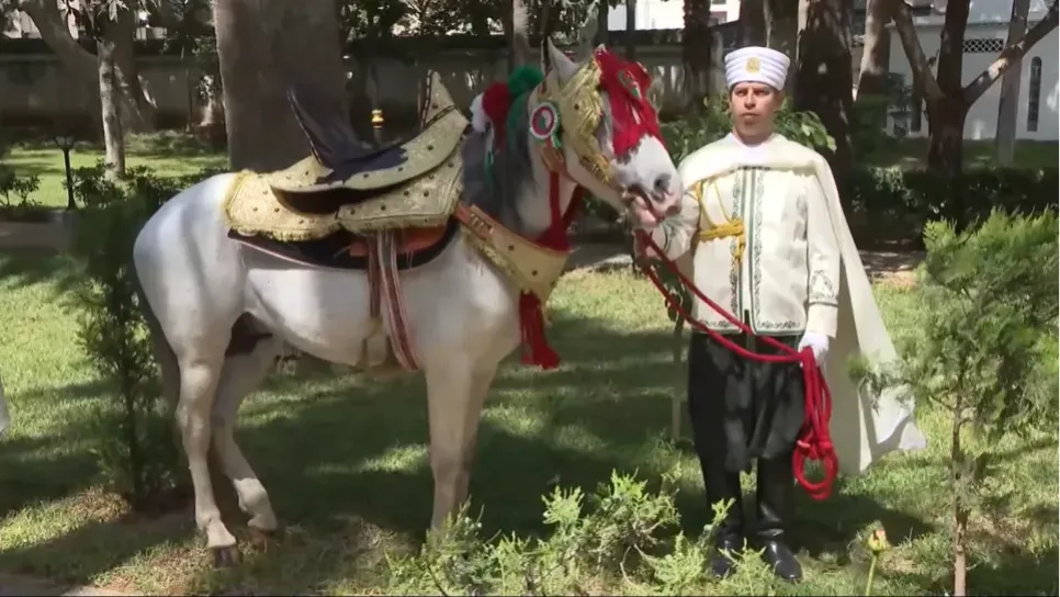 ونشرت رئاسة الجمهورية شريط فيديو على صفحتها الرسمية في "الفايسبوك"، لحظة تسليم الرئيس تبون للهدية إلى ضيف الجزائر، وحسب البطاقة الفنية فإن اسم الحصان هو هلال، ذو لون رمادي، تاريخ ميلاده 3 مارس 2020 ويبلغ ارتفاعه 1.56 متر.