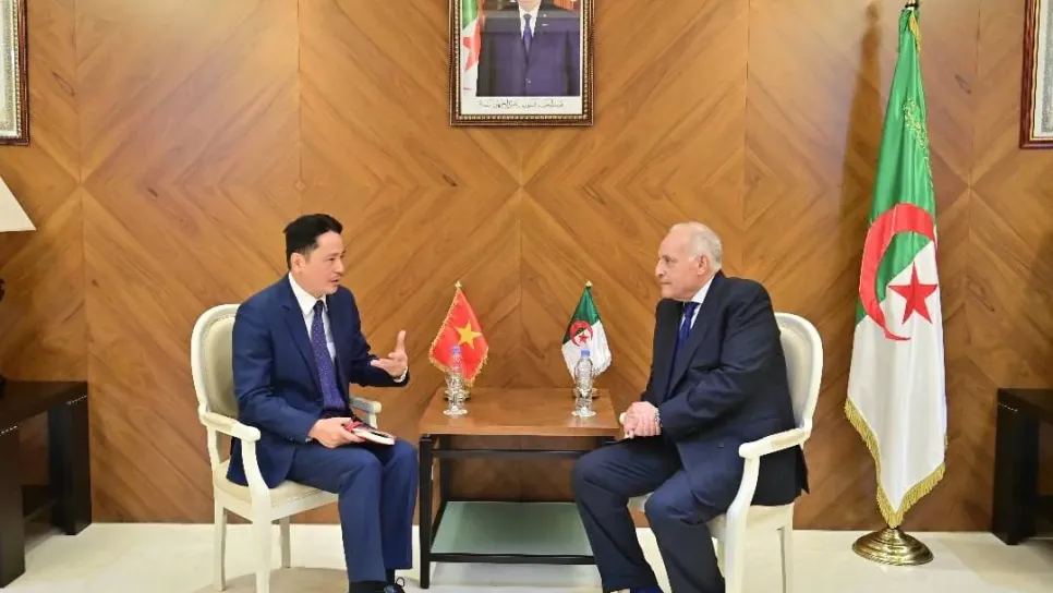 استقبل وزير الشؤون الخارجية والجالية الوطنية بالخارج، السيد أحمد عطّاف، اليوم بمقر الوزارة، سفير جمهورية فيتنام الاشتراكية، السيد نجوين ثان فينه، الذي أدى له زيارة وداع إثر انتهاء مهمته بالجزائر. و شكل اللقاء فرصة لتقييم علاقات الصداقة والتعاون بين البلدين والإشادة بالجهود المبذولة من قبل السفير نجوين ثان فينه للمساهمة في تطويرها.