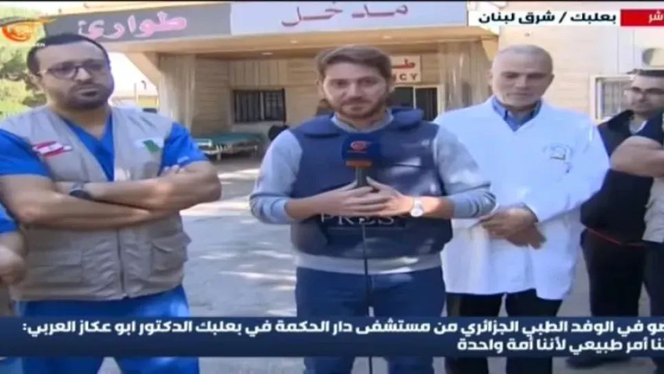 يتواجد وفد طبي جزائري تحت غطاء لجنة الاغاثة لجمعية العلماء المسلمين الجزائريين في مستشفى دار الحكمة بمحافظة بعلبك، في لبنان ، لتقديم يد المساعدة للأطقم الطبية اللبنانية  في مواجهة أثار الدمار الذي تخلفه غارات جيش الاحتلال الصهيوني. ويقول الدكتور بوعكاز العربي، الناطق باسم الوفد الطبي الجزائري، بأن تواجدهم في لبنان لـ "مساعدة نظرائهم ليس مزية بل واجب إنساني تفرضه رابطة الدم بين الشعبين الجزائري واللبناني"، مضيفا أن "الوفد يمثل كل الجزائريين الذين يعرفون جيدا معاناة الشعوب في وقت الحروب". وأردف الدكتور بوعكاز العربي بأن "الوفد تواجد من قبل في غزة الجريحة وقدم طيلة تواجده في الأرض المغتصبة...