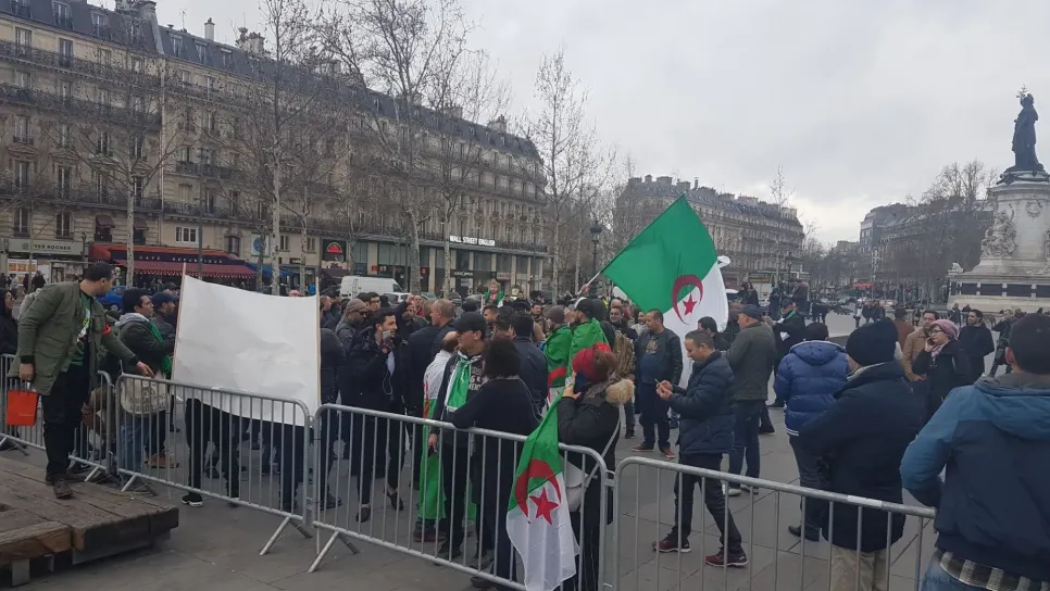 شرع أعضاء الجالية الجزائرية بفرنسا في التوافد إلى ساحة الجمهورية قبل انطلاق التجمع باريس. يتوافد حاليا أعضاء الجالية الجزائرية بباريس إلى ساحة الجمهورية قبل إنطلاق موعد التجمع المقرر عند منتصف النهار لضم أصواتهم للمتظاهرين داخل الجزائر الرافضين للعهدة الخامسة. وحسب أحد المنظمين من حزب جيل جديد أوروبا فاتح بن دالي في تصريح له لـ "الخبر" "تجمع اليوم مصيري بالنظر إلى رمزية التاريخ المصادف لإنتهاء مهلة إيداع الملفات موضحا بأن الشعب قرر بأن يقول كلمته الأخيرة و هو مصر على وقف هذه المهزلة الحاصلة على مستوى البلاد". و يرتقب أن يتجاوز عدد المحتجين 15 ألف متظاهر.