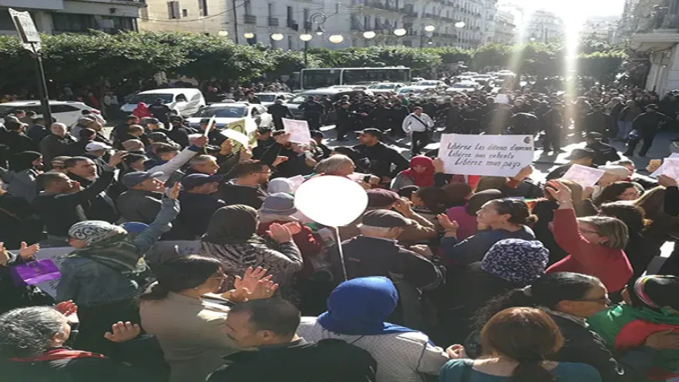 نظمت ظهيرة اليوم الخميس وقفة احتجاجية بساعة أودان في الجزائر العاصمة للتضامن مع معتقلي الحراك. ورفع المحتجون، الذين كان من بينهم عائلات المعتقلين، شعارات مساندة للحراك الشعبي ومطالبة بالإفراج عن موقوفي الحراك. وبعد حوالي 30 دقيقة من بداية الوقفة بدأت الشرطة في تطويقها وتفريق المحتجين لتتحول بعدها إلى مطاردات للمتظاهرين في ساحة موريس اودان وشارع ديدوش مراد. صور: مصطفى بسطامي