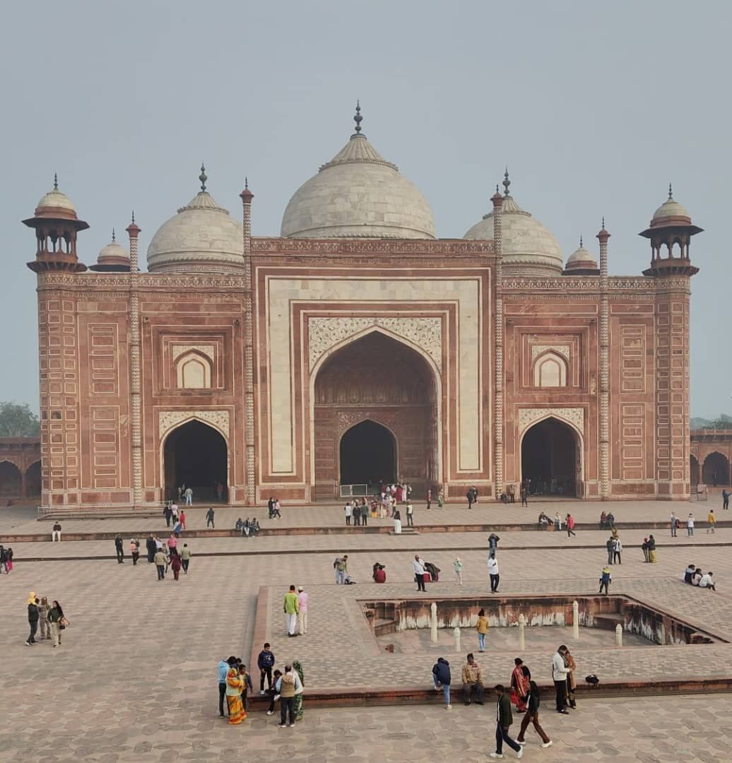 قبل تخطي مدخل البوابة، يتراءى لك قصر "تاج محل" المبني كله بالرخام، إذ يبدو كبيرا من وراء المدخل، ثم يقل حجمه بعد تخطيه، لتجد نفسك على بعد أمتار من واحد من بين أهم المباني التاريخية في العالم.
