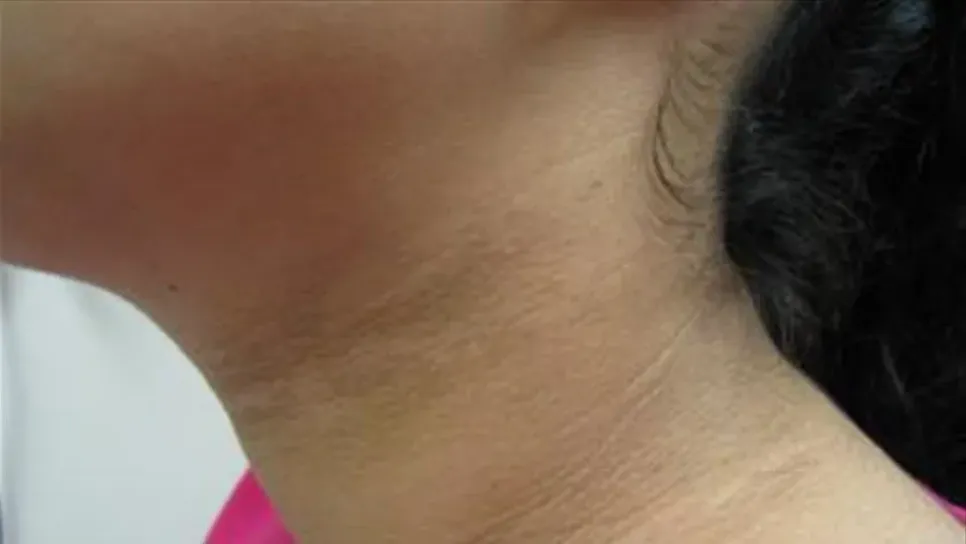 نتيجة الزيادة المفرطة في الوزن قد تؤدي إلى ظهور هذه العلامات على الرقبة وهي تسمى بـ nigricans acanthosi. قد تظهر هذه العلامات أيضاً على الوجه، الجبهة، تحت الإبطين، بين الفخذين.... ويشير ذلك إلى مستوى أنسولين مرتفع جداً في الدمّ. إنه دليل خطير على الإصابة بالسكري من النوع الثاني.