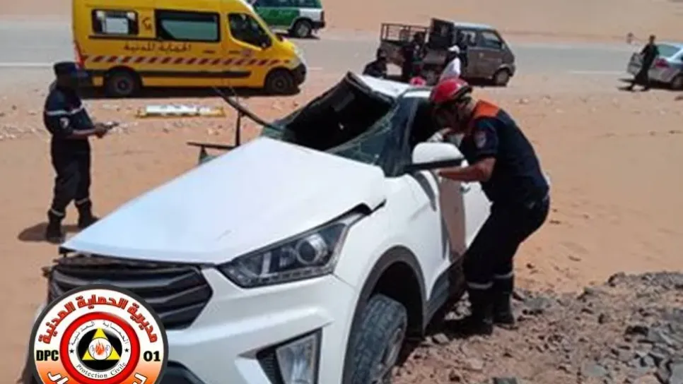 خلف، اليوم الإثنين، حادث مرور بولاية أدرار وفاة شخصين وإصابة أربعة آخرين بجروح. وأفاد بيان لمصالح الحماية المدنية، أن الوحدة الثانوية رڤان تدخلت اليوم على الساعة 10سا و 11 د لأجل حادث مرور تمثل في انقلاب سيارة بالطريق الوطني رقم 52 الرابط بين رڤان وأولف، حيث خلف الحادث، متوفين امرأة وطفل و 04 جرحى.