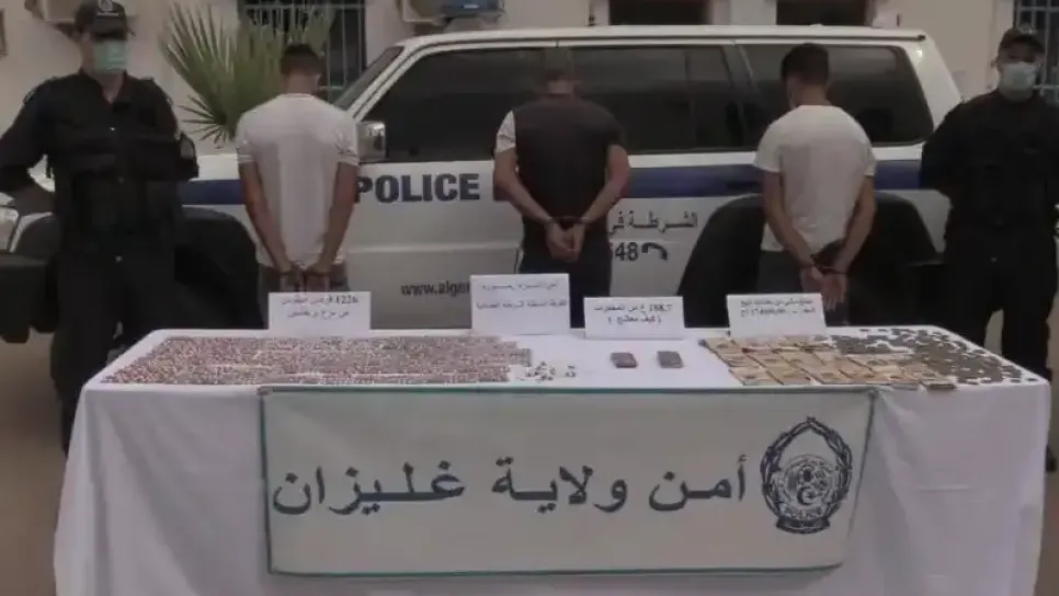 تمكنت فرقة مكافحة المخدرات بالمصلحة الولائية للشرطة القضائية بأمن ولاية غليزان من تفكيك شبكة إجرامية متكونة من 03 أشخاص مختصة في ترويج المهلوسات وحجز 1680 كبسولة، وذلك على إثر الاستغلال الجيد للمعلومات المتعلقة بوجود مجموعة من الأشخاص يقومون بترويج الأقراص المهلوسة، والمخدرات على مستوى مختلف أحياء مدينة غليزان. وبعد إعداد خطة عمل محكمة، وبالتنسيق مع النيابة المحلية، تم توقيف أحد المشتبه فيهما، وضبط بحوزته على كيس بلاستكي به كمية معتبرة من المؤثرات العقلية، فيما تم توقيف شريكيه اللذين كانا برفقته على متن مركبة.وقد أحيل أفراد العصابة إلى النيابة.