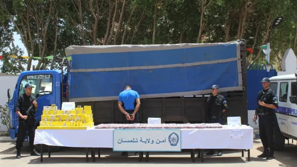 تمكنت بحر هذا الأسبوع الفرقة المتنقلة للشرطة القضائية مغنية التابعة لأمن ولاية تلمسان من تفكيك شبكة دولية منظمة تنشط في مجال تهريب المخدرات انطلاقا من الشريط الحدودي متجهين إلى ولاية تيبازة، حيث تم خلال هذه العملية النوعية حجز كمية من المخدرات قنب هندي قدرت بقنطار و05 كلغ محملة على متن شاحنة من نوع إسيزي مخبأة بإحكام. وبعد توسيع دائرة التحقيق وبالتنسيق مع وكيل الجمهورية المختص إقليميا تم تفتيش مزرعة الممون الرئيسي لهذه السموم الكائنة على مستوى الشريط الحدودي، ليتم العثور على كمية معتبرة من المؤثرات العقلية قدرت بـ44000 قرص، ومبلغ مالي يقدر بـ48000 دج، وتوقيف شخص سائق الشاحنة أحد أفراد الشبكة...