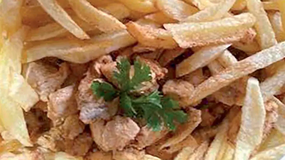 المقادير:شريحة لحم إسكلوب مقطعة، ملعقة صغيرة ملح، ملعقة صغيرة فلفل أبيض، ملعقة صغيرة فلفل أحمر، ملعقتان صغيرتان خردل، 2 سنينات ثوم، تقدّم مع البطاطا المقلية. التحضير: في إناء نضع ملح، ثوم مهروس، فلفل أبيض وفلفل أحمر، خردل، نخلط جميع المكونات مع الإسكلوب مقطع ونضع الخليط في الثلاجة لمدة ساعة. من جهة أخرى، نقلي البطاطا ثم الإسكلوب ونضعهما في صحن التقديم.