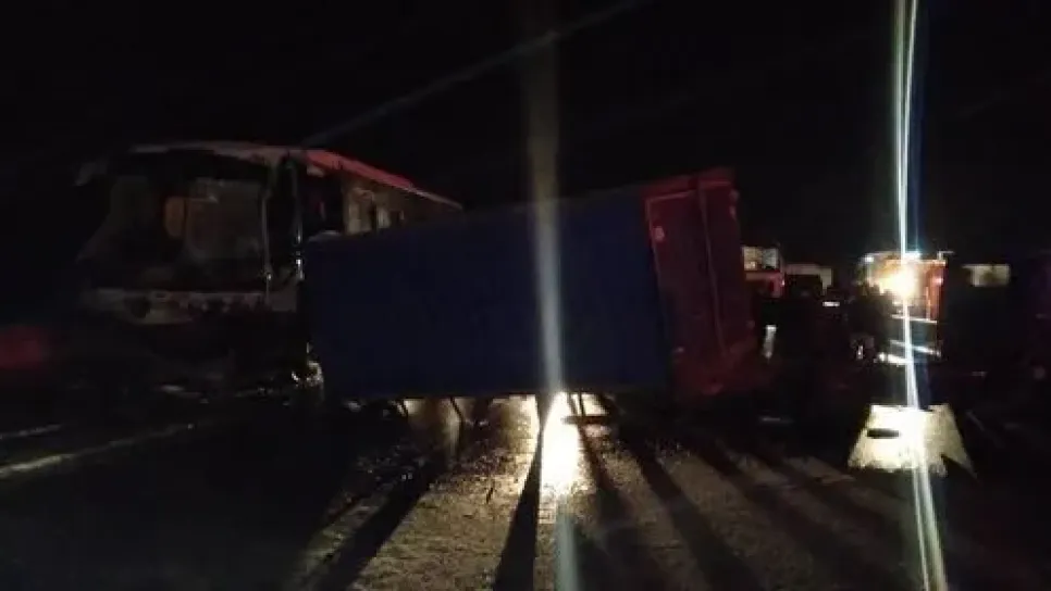 أصيب تسعة أشخاص بجروح متفاوتة الخطورة اصطدام بين أربع شاحنات وحافلة لنقل المسافرين وسيارة ليلة البارحة بالطريق السار شطره العابر لإقليم ولاية سطيف..