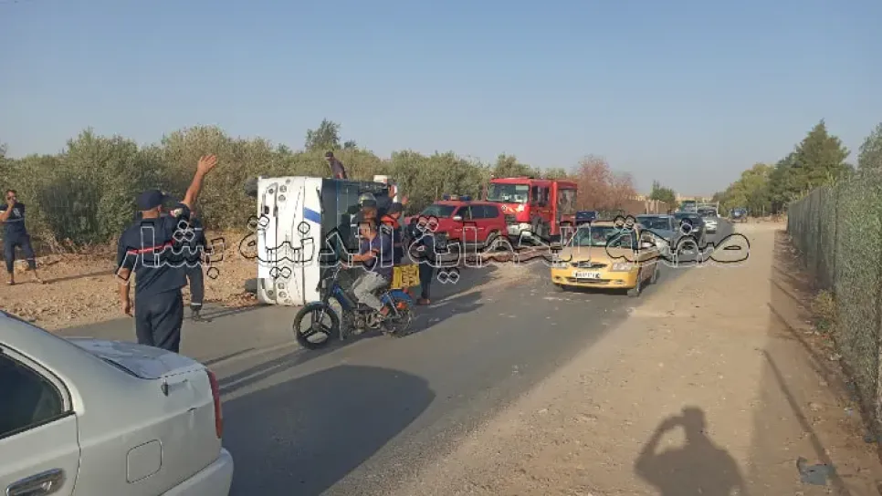 أصيب 17 شخصا في حادث مرور وقع صباح اليوم على طريق الثقيل لمدينة بشار. وأفادت الحماية المدنية لولاية بشار في بيان عبر صفحتها على الفايسبوك، أن فرقها للإسعاف والإنقاذ بمركز الدبدابة تدخلت صبيحة اليوم الإثنين على الساعة السابعة وواحد وخمسين دقيقة (07:51) إثر انقلاب حافلة نتيجة اصطدامها بجرار فلاحي خرج من أحد المزارع المحاذية للطريق، وبالضبط قرب محور دوران طريق الوزن الثقيل ببلدية بشـار. وأضاف نفس المصدر أن الحادث تسبب في إصابة17 شخصا بجروح متفاوتة الخطورة، والضحايا من جنسيات مختلفة منهم سبعة أجانب وعشرة جزائريين وثمانية من الإناث وتسعة ذكور، قدمت لهم الإسعافات اللازمة ثم نقلوا من قبل إسعافات ا...