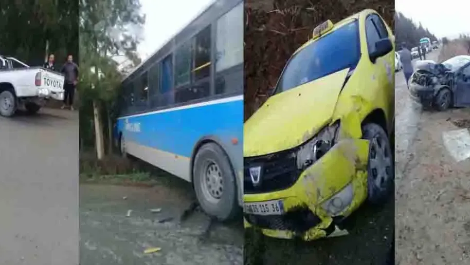 تسبب حادث تصادم تسلسلي وقع اليوم الثلاثاء على الطريق الولائي رقم 103 الرابط بين الطريق الوطني رقم 44 و الطريق الوطني رقم 84 باتجاه دائرة الذرعان في إصابة 23 شخصا (12 طالبة و 8 طلاب) حسب ما علم من مصالح الحماية المدنية بالطارف. ووقع الحادث بين ثلاث مركبات سياحية و حافلة لنقل الطلبة يضمن الخدمة على خط البسباس (ولاية الطارف)- سيدي عاشور (ولاية عنابة) في وقت مبكر من صباح اليوم الثلاثاء بمفترق الطرق الرابط بين بئر حناش و مصنع الطماطم صاكا حسب ما أوضحه ذات المصدر. وتم نقل الضحايا الذين تتراوح أعمارهم بين 19 و 23 سنة و الذين كان من بينهم من هم في حالة صدمة فيما كانت إصابة البقية "طفيفة" نحو مصل...