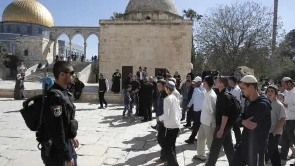 اعتقلت شرطة الاحتلال ستة فلسطينيين وستة اسرائيليين الاثنين في باحة المسجد الاقصى في البلدة القديمة في القدس الشرقية المحتلة، حسبما اعلنت متحدثة باسم الشرطة. وقالت لوبا سمري لوكالة فرانس برس "اعتقل الفلسطينيون بينما كانوا يحاولون منع يهود من الدخول". واشارت سمري الى انه تم اعتقال 4 اسرائيليين قاموا بمخالفة قواعد الزيارة والقوانين التي تمنعهم من الصلاة في المسجد، بينما اعتقل اسرائيليان اخران بسبب الاخلال بالنظام.
