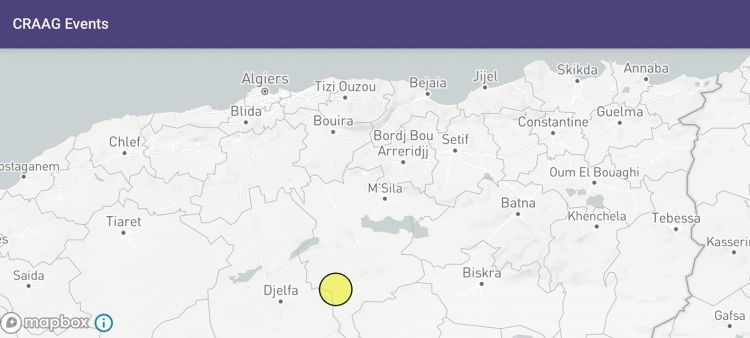 سجل مركز البحث في علم الفلك والفيزياء الفلكية والفيزياء الأرضية، هزة أرضية اليوم 27 ماي على الساعة 00سا و 01د، بشدة 3.7 درجات على سلم ريشتر، بولاية المسيلة.