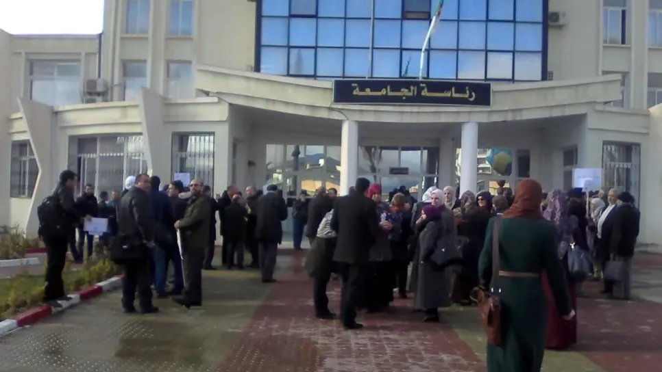 نظم صباح اليوم العشرات الأساتذة بجامعة اكلي محند اولحاج بالبويرة والمنضوين تحت لواء تنظيم المجلس الوطني لأساتذة التعليم العالي فرع البويرة وقفة احتجاجية أمام مقر عمادة الجامعة على خلفية تعرض أستاذين إلى اعتداء دون ان تتحرك الإدارة ساكنا اتجاه الأمر . أساتذة الكناس الذين وقفوا أمام مقر عمادة الجامعة رافعين شعارات "اين كرامة الأساتذة" "الاستاذ بالبويرة يهان"..قدموا بيان تنديدي تحصلت "الخبر " على نسخة منه يشرح فيه وقائع الاعتداء على الأستاذين بكلية العلوم والعلوم التطبيقية ؛وكذا صمت الإدارة اتجاه الأمر والذي حملوا جزءا من تدهور الأوضاع داخل حرم الجامعة، كما دعا الأساتذة عبر البيان الى تنظي...