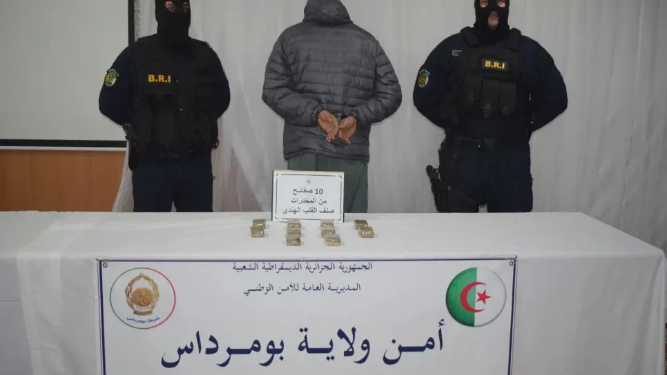 تمكنت فرقة البحث والتدخل بالمصلحة الولائية للشرطة القضائية بأمن ولاية بومرداس من الإطاحة بعشريني ينحدر من ولاية بومرداس، يقوم بترويج المخدرات، وذلك بناء على ورود معلومات تفيد بوجود المشتبه فيه بإحدى البلديات وبحوزته كمية معتبرة من المخدرات بصدد إعادة بيعها.