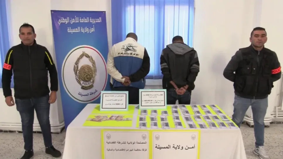 تمكنت المصالح العملياتية للأمن الوطني، نهاية الأسبوع الماضي، بكل من المسيلة، سيدي بلعباس وسطيف، من ضبط 67 مليون سنتيم مزورة من العملة الوطنية، من فئتي 1000 دج و2000 دج، كانت موجهة للتداول في السوق الوطنية وتوقيف 06 أشخاص من بينهم امرأتين وحجز المعدات المستعملة في عملية التزوير. تم تقديم المشتبه فيهم أمام الجهات القضائية المختصة، عن قضية تكوين جمعية أشرار لغرض الإعداد لجناية تقليد وحيازة أوراق نقدية ذات سعر قانوني لأجل طرحها للتداول، الشروع في عملية تزوير أوراق نقدية، حيازة وصناعة مواد وأدوات معدة لصناعة وتزوير النقود.
