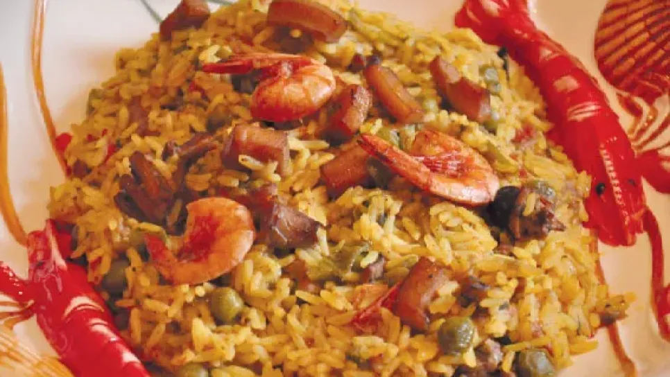 المقادير 1 كلغ بايلا (متوفرة في السوق)، حبة بصل مقطعة رقيق، سنينات ثوم مهرسة، فلفل أحمر حلو مقطع إلى مكعبات، فلفل أخضر حلو مقطع إلى مكعبات، حبة طماطم مقطعة إلى مكعبات، 2 ملاعق كبيرة معدنوس مقطع رقيق، 1 كاس أرز، 1 ملعقة كبيرة زيت.التحضير  1- في طنجرة حمسي في الزيت، البصل والثوم والفلفل الحلو (الأحمر والأخضر)، أضيفي الطماطم ثم البايلا، أضيفي الفلفل الأسود، الملح والزعفران، أتركيها تطهى دون إضافة الماء مدة 20 د مع التحريك من حين لآخر.2 - أضيفي الأرز المنظف والمغسول واتركي الكل يطهى مدة 15 د دون فتح الطنجرة.