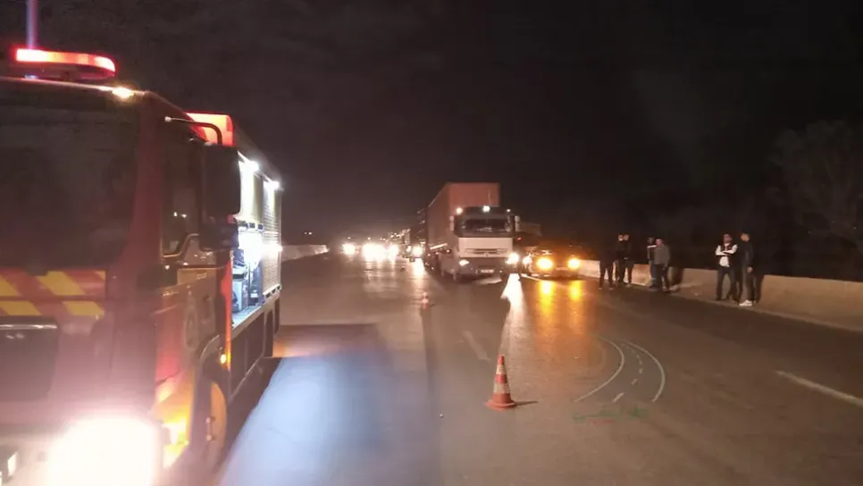 توفي شخصان في حادث انحراف وانقلاب شاحنة نصف مقطورة ليلة الأحد إلى الإثنين بمنحدر الجباحية في الطريق السيار في شطره العابر لولاية البويرة. وأفادت خلية الإعلام والاتصال للحماية المدنية لولاية البويرة في بيان عبر صفحتها على الفايسبوك، أن وحداتها تدخلت مساء أمس في حدود الساعة الثامنة وست عشرة دقيقة (20:16) بالطريق السيار شرق ـ غرب اتجاه الجزائر العاصمة بمنطقة بلحناش بمنحدر الجباحية لأجل حادث مرور تمثل في انحراف وانقلاب شاحنة نصف مقطورة. وأضاف نفس المصدر إن الحادث خلف وفاة رجلين يبلغان من العمر 47 و64 سنة كانا محصورين تم إخراجهم من طرف اسعافات الحماية المدنية بعد جهد كبير استمر لثلاث ساعات وتحو...