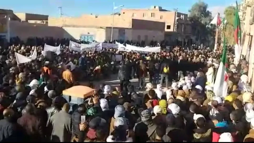 أحتشد، اليوم الأربعاء، مئات المواطنين من مختلف بلديات ولاية البيض أمام قاعة محاضرات معزوزي عبد القادر، وسط مدينة الأبيض سيدي الشيخ الولاية المنتدبة، احتجاجا على إقامة مشروع مصنع تكرير الغاز بتراب ولاية أدرار والمقرر حفر أغلبية أباره بحوالي 20 بئرا بمنطقة "الموينة" التابعة لإقليم بلدية البنود وهو المشروع المسجل منذ 2008 بتراب ولاية البيض، ثم تم تغيير مكانه بتراب ولاية أدرار حيث تقرر بناؤه بشراكة 4 مؤسسات أجنبية في أجل مقدر بأربع سنوات حيث أنطلق على شكل ورشات وهو ما أثار حفيظة الشباب البطال السنة الماضية بمنطقة الجنوب الغربي بالولاية المنتدبة الأبيض سيد الشيخ وبلدية البنود الحدودية مع بلدية تيمي...