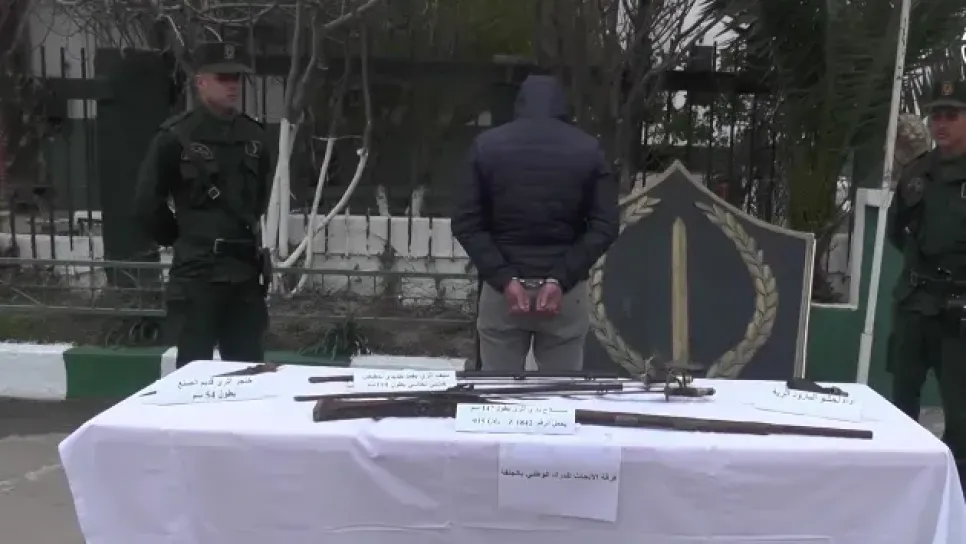 تمكنت فرقة الأبحاث للدرك الوطني بالجلفة من توقيف شخص وحجز أسلحة تعود للقرن الثامن عشر حسب ما أورده بيان لمصالح الدرك الوطني حيثيات القضية تعود إلى ورود معلومات إلى فرقة الأبحاث للدرك الوطني بالجلفة مفادها وجود شخص في العقد الثالث من العمر بأحد إحياء مدينة الجلفة يحوز على اثار قديمة تعود للحقبة الاستعمارية لغرض بيعها على الفور تم تشكيل دورية بقيادة قائد فرقة الأبحاث والتنقل الى عين المكان اين تم رصد المعني وتوقيفه وحجز أسلحة تعود للقرن الثامن عشر دون اي وثيقة تثبت وضعيتها القانونية تتمثل في خمسة قطع اثرية سيفان بغمد حديدي بقبض خشبي نحاسي بطول 110 سم احدهم يحمل كتابة باللغة اللاتينية يعود لسنه...