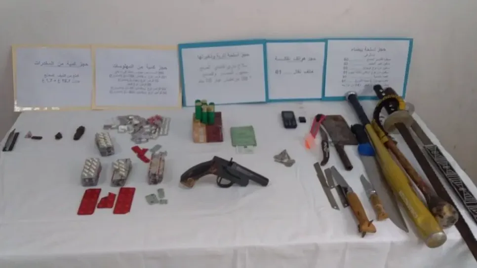 تمكن عناصر فرقة الشرطة القضائية بأمن دائرة حد الصحاري من حجز سلاح ناري تقليدي الصنع من الصنف الخامس، بالإضافة إلى كمية من الذخيرة والأقراص المهلوسة والمخدرات، حسبما أفادت به اليوم الأحد خلية الإعلام لذات السلك. وأوضح المكلف بالإعلام لدى أمن الولاية، محافظ الشرطة ساعد فيطس، لوكالة الأنباء الجزائرية أن هذه العملية التي تمت مطلع الأسبوع الجاري، جاءت على إثر تنفيذ عملية تفتيش قانونية لمسكن أحد المشتبه فيهم في العقد الرابع من عمره، أفضت إلى العثور بداخله على سلاح ناري تقليدي الصنع من الصنف الخامس، وكذا كمية من مادة البارود وزنها واحد كلغ و 10 وحدات من المقذوف المعدني و 148 خرطوشة. وعثرت الش...