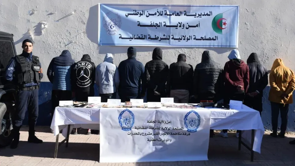 في عملية نوعية تمت معالجتها من طرف عناصر فرقة مكافحة الاتجار الغير مشروع بالمخدرات والمؤثرات العقلية بأمن ولاية الجلفة، تمكنت الشرطة القضائية من توقيف 10 أشخاص من بينهم امرأة تتراوح أعمارهم مابين 23 و45 سنة. الموقوفون متهمون بالتورط في قضية شحن ونقل وتخزين وتوزيع المخدرات والمؤثرات العقلية، والمخدرات الصلبة، والكوكايين قصد البيع والترويج في إطار جماعة إجرامية منظمة، إنشاء محل للفسق والدعارة، عرقلة مهام عناصر الضبط القضائي، حيازة أجهزة حساسة " منظار حربي " وسلاح ناري من الصنف الرابع " مسدس " بدون رخصة من السلطات المختصة، وجنحة تبييض الأموال. العملية جاءت على إثر تلقي عناصر ذات الفرقة لم...