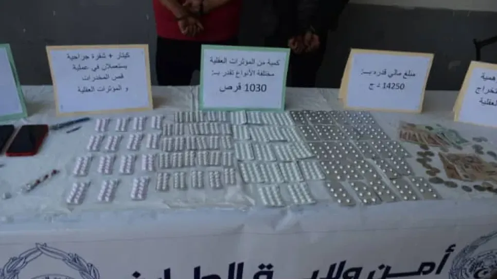 أطاحت الفرقة المتنقلة للشرطة القضائية بالذرعان بعصابة اجرامية تنشط الاتجار المشروع بالمؤثرات العقلية الصلبة متكونة شخصان ينحدران مدينة البسباس، المعنيان يبلغان العمر 26.