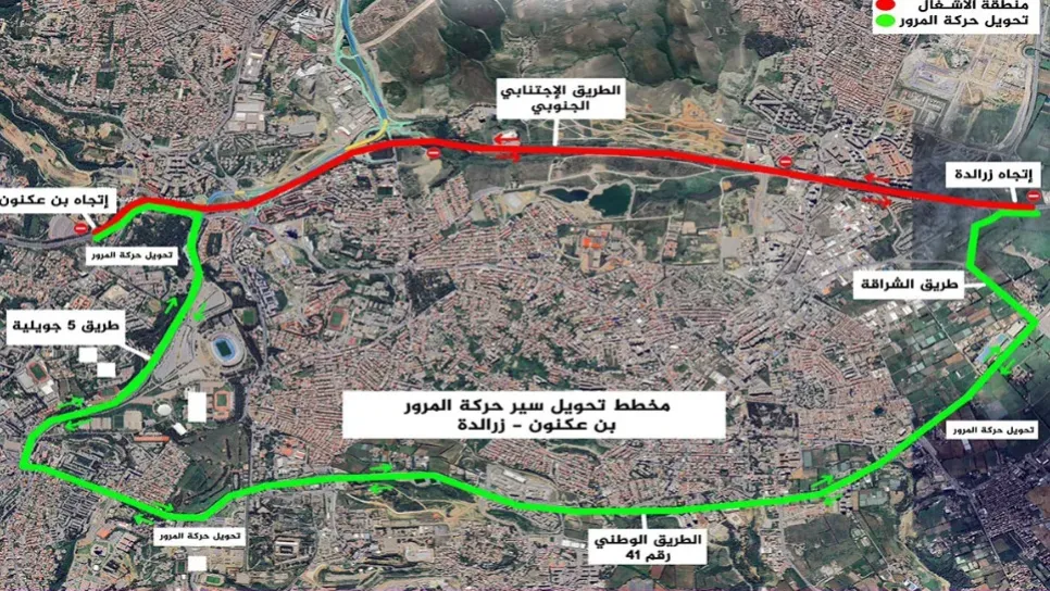 تحول حركة السير من زرالدة إلى محول الطريق الوطني رقم 36، ثم إلى الطريق الوطني رقم 41 مرورا بالشراقة وشوفالي، ثم الخروج عبر الطريق السريع 05 جويلية إلى الطريق الاجتنابي الجنوبي.