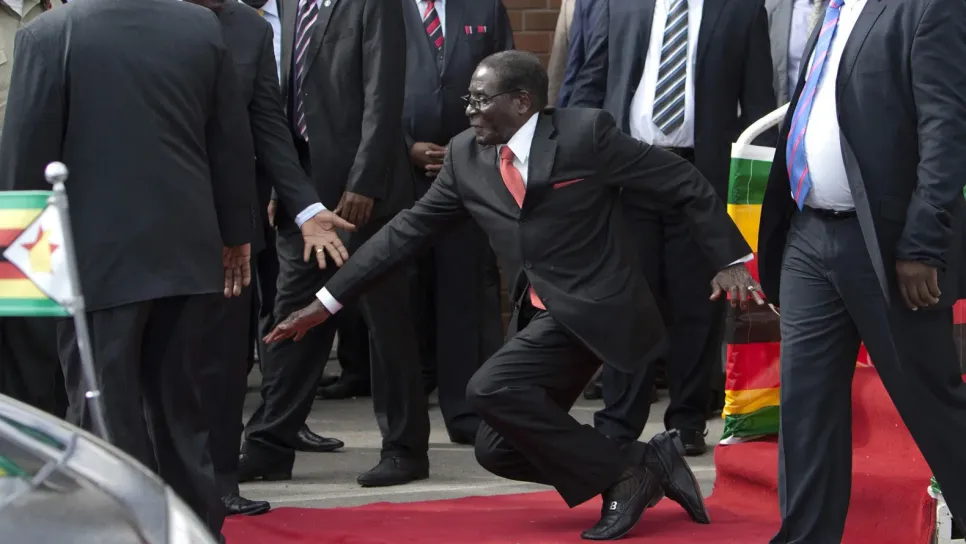 سقط رئيس زيمبابوي، روبير موغابي، أرضا عند محاولته ركوب سيارة عند خروجه من المطار، وحاول أكبر رئيس في العالم منع تداول الصورة على مواقع التواصل الاجتماعي، رغبة رقابة كلفته غاليا فتفنن الفايسبوكيون عبر العالم في استغلال صورة تهاويه أرضا، وحولوها الى حدث الساعة منذ أمس، وهذه بعض الصور وليس كلها. وعين موغابي مؤخرا رئيسا للاتحاد الافريقي، ويعرف أنه أكبر رئيس في العالم ببلوغه أكثر من 90 سنة.