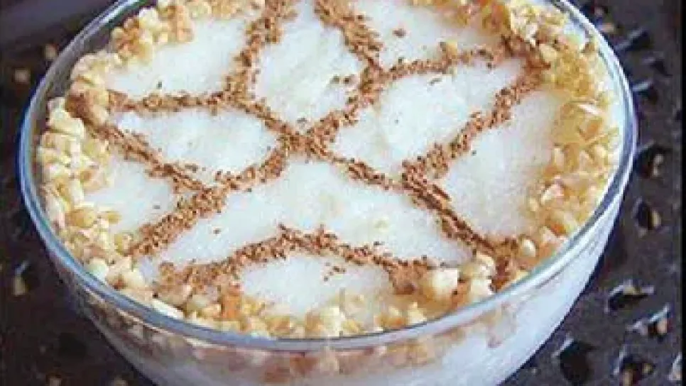المقادير1 لتر حليب 5 ملاعق كبيرة مطحون أرز ملعقة كبيرة مايزينة نشاء 3 ملاعق كبيرة ماء الزهر 5 ملاعق كبيرة سكر قرفة للتزيين التحضير-انزعي نصف كأس حليب من اللتر وضعي فيه المايزينة، امزجي السكر والأرز مع الحليب، وحركي الخليط على نار هادئة. عندما يبدأ الخليط بتشكيل فقاعات، أضيفي المايزينة المذوّبة في الحليب المتبقي وماء الزهر، استمري بالتحريك حتى يصبح الخليط كثيفا (يعقد) ثم افرغيه في قوالب خاصة بالتحلية. زيّني بالقرفة واتركيها تبرد جيدا.