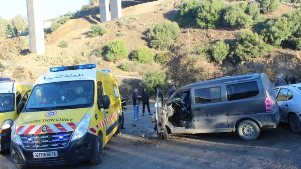 وتمثل الحادث، حسب بيان مصالح الحماية المدنية، في اصطدام بين سيارة سياحية وأخرى مخصّصة لنقل أطفال روضة، ما أسفر عن إصابة 13 شخصا، تتراوح أعمارهم بين 18 شهرا و65 سنة، حيث تعرّضوا لإصابات مختلفة استدعت التدخل السريع لفرق الحماية المدنية.