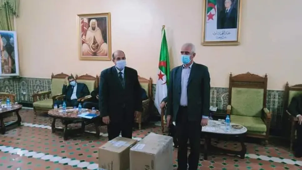 أشرف والي ولاية المدية واللجنة الأمنية بالتنسيق مع المجلس الشعبي الولائي والسلطات المحلية على تسليم مستلزمات طبية لفائدة المؤسسات الصحية والصحة الجوارية بكل تراب الولاية، حيث تمثلت الوسائل 50 ألف كمامة، و12 ألف مئزر طبي و43 ألف كمامة طببة. وأكد والي المدية أن هذه العملية ستتبع بعمليات أخرى مطمئنا بخصوص خزانات الأوكسجين والعتاد الطبي للتكفل بمرضى كوفيد19 ، وتوفير الأوكسجين. وأضاف إن مصالحه بصدد إجراء تحقيقات وبائية التي ستسمح بتحديد أماكن انتشار الوباء و حصر الوباء واتخاذ الإجراءات المناسبة في وقتها.