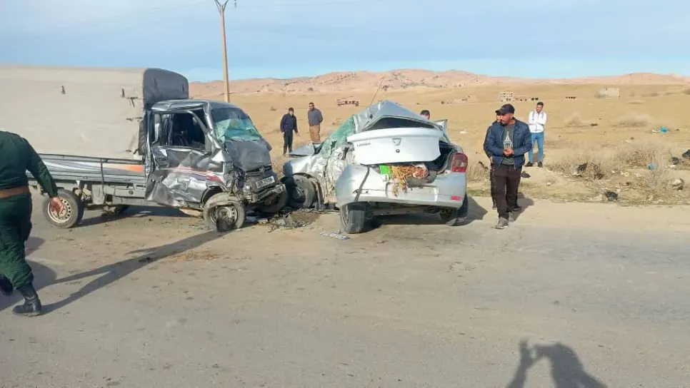 أودى حادث مرور اليم وقع مساء اليوم في حدود الساعة الثالثة و20 د، على مستوى جنوب لبلدية قصر البخاري لطريق الوطني رقم واحد بحياة شخصين اثنين يبلغان من العمر 35و20 سنة وهذا اثر اصطدام بين سيارة من نوع سامبول وشاحنة من نوع دي فيام وإصابة شخصين بجروح متفاوتة الخطورة وقد تدخلت مصالح الحماية المدنية لنقل جثتي الضحيتين اللذين كان على متن السيارة إلى مصلحة حفظ الجثث والجريحين إلى مستشفى قصر البخاري.