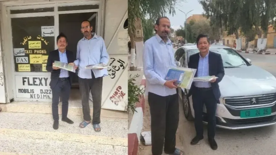 قام أول أمس الملحق الثقافي الأندونيسي بالجزائر بالتنقل إلى مدينة حاسي بحبح في الجلفة بزيارة إلى الكاتب الجزائري خذير سالم ابن مدينة حاسي بحبح من أجل استلام نسخة من كتابه "إسرائيل مركز الخرافة" والذي كان يريد التنقل إلى مقر السفارة بالجزائر العاصمة لإهدائهم نسخة من كتابه ولسبب بساطة حال الكاتب وعدم قدرته على التنقل إلى سفارة إندونيسيا بالعاصمة الجزائرية، فاجأته سفارة إندونيسيا بزيارة إلى دكانه البسيط بحاسي بحبح واستلمت النسخ عبر ملحقها الثقافي.