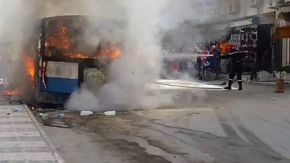 تعرضت حافلة نقل مسافرين صبيحة اليوم من نوع سوناكوم بمحطة المسافرين مقابل سوق الفلاح بوسط مدينة تبسة لحريق أدى إلى إتلافها وتحولها لكومة من الرماد قبل أن تتدخل الحماية المدنية لإخماد الحريق، وقد فتحت مصالح الأمن الحضري الأول تحقيقا في أسباب الحادثة. وجدير بالذكر فإن موقع احتراق الحافلة يقع بجانب محطة السكة الحديدية التي تشهد في كل يوم وعلى مدار 24 ساعة حرق أكوام من القمامة الكرتونية والبلاستيكية والنفايات التي يرميها أصحاب المحلات التجارية في كل الاتجاهات.