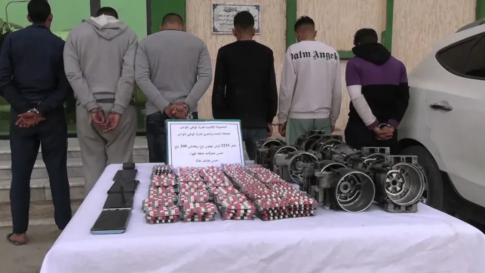 تمكنت مصالح الأمن المختصة بالوادي التابعة لوحدات المجموعة الإقليمية للدرك الوطني لمكافحة الجريمة المنظمة والحد من نشاط شبكات الاتجار غير الشرعي بالمخدرات والمؤثرات العقلية، من تنفيذ ثلاث عمليات نوعية متفرقة، أسفرت عن توقيف تسعة أشخاص وحجز أكثر من 6400 قرص مهلوس من نوع بريغابالين 300 ملغ، بالإضافة إلى ضبط سيارة وشاحنة، حسبما جاء في بيان للدرك الوطني.