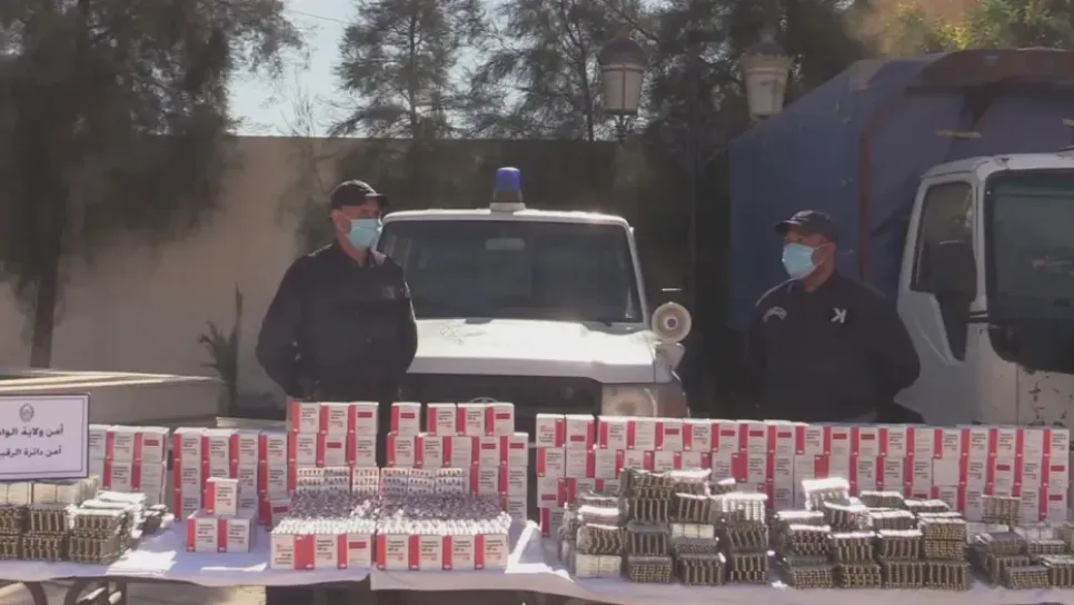 تمكن اليوم عناصر أمن دائرة الرقيبة بالوادي من إحباط محاولة إغراق الولاية بكميات ضخمة من المؤثرات العقلية قدرت بـ 91490 قرص مهلوس مهرب إلى داخل الوطن عبر الحدود الشرقية. وذكر مصدر مسؤول من الشرطة لـ"الخبر" بأن كمية المهلوسات كانت مموهة بإحكام بمواد تعبئة للخضر على متن شاحنة لنقل البضائع على مستوى الطريق الوطني رقم 48 بمدخل مدينة الرقيبة. وأضاف المصدر ذاته، بأن تفاصيل العملية تعود إلى استغلال معلومات حول تواجد الشحنة على متن الشاحنة والتي كانت مركونة بأحد الأماكن المعزولة بالقرب من إحدى المزارع المتواجدة بمدخل المدينة. وبعد التفتيش الدقيق لأجزاء المركبة تم العثور على الكميات الضخمة المذكورة ح...