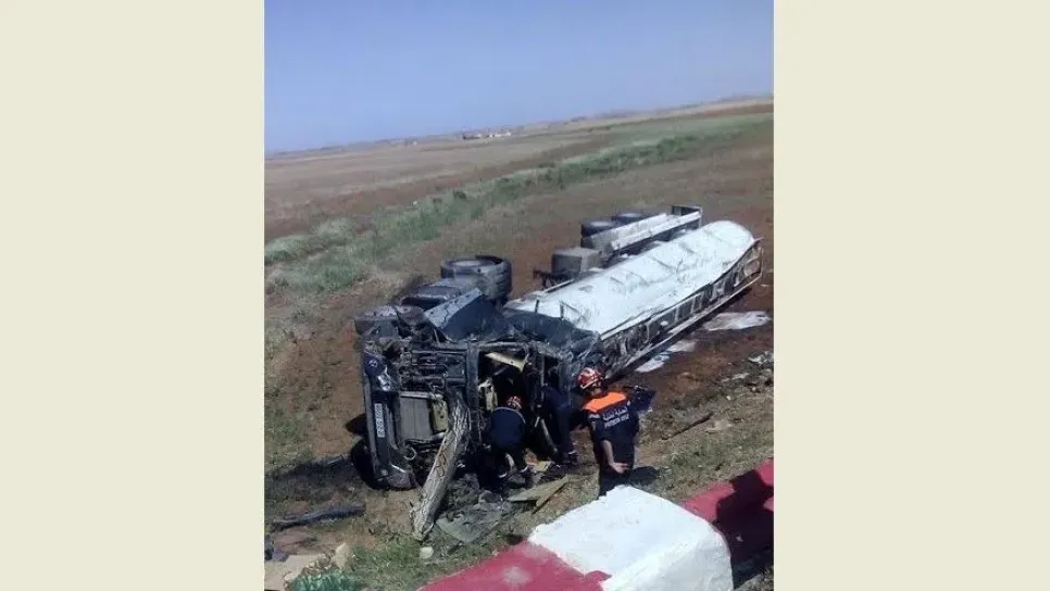 أصيب سائق شاحنة صهريج معبأة بالمازوت بجروح متعددة جراء انقلاب الشاحنة على الطريق الوطني رقم 6، ببلدية سيدي أحمد، التابعة إقليميا لدائرة عين الحجر، في سعيدة. وتنقل أعوان الحماية المدنية إلى مكان الحادث، وتم تقديم الإسعافات الأولية للسائق المصاب قبل إجلائه إلى المستشفى لتلقي العلاج.