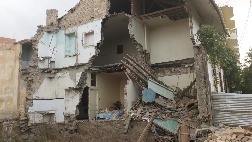 انهيار منزل من طابقين يشرد عائلة من 20 فرد