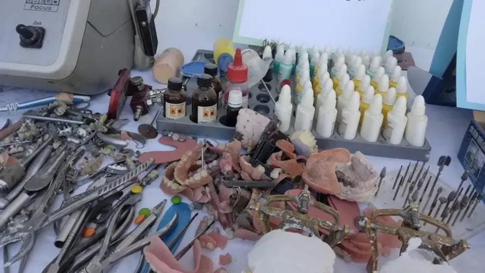 أوقفت مصالح أمن ولاية باتنة شخصا ينتحل طبيب أسنان بمسكنه الواقع بحي لمباركية بمدينة باتنة وحجز العتاد الذي يستعمله في عمليات ترميم الأسنان وتركيبها. ونقلت إذاعة باتنة الجهوية عن ذات المصالح اليوم الإثنين، أنها أوقفت شخصا لامتهانه صفة طبيب أسنان مستغلا في ذلك مسكنه بحي الإخوة لمباركية بمدينة باتنة كمخبر لترميم وتركيب الأسنان بدون رخصة. وأضاف نفس المصدر إنه تم حجز عتاد يتمثل في كرسي طبي، 02.65 كلغ من مادة الشمع الأحمر، مجموعة أدوات يدوية ونماذج وأطقم أسنان، آلتين تستخدمان في تحضير مادة الجبس مع قوالب مختلفة الأحجام، 40 حقنة تخدير موضعي، مجموعة أسنان غير مستعملة مثبتة بمادة الشمع، لوحة إشهارية...