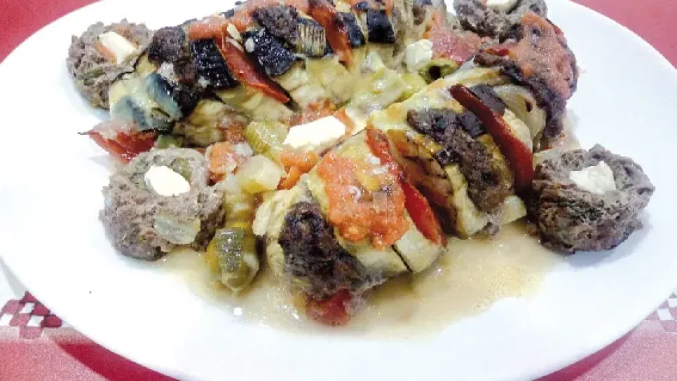 المقادير:باذنجان من الحجم المتوسط للكفتة: لحم مفروم ناعم، رأس بصل مفروم ناعم، قليل من البقدونس مفروم ناعم، بهارات مشكلة، ملح وقليل من بياض بيضة. الصلصة:حبتا طماطم، بصلتان متوسطتان، 3 إلى 4 فصوص ثوم، معدنوس، قليل من الماء، ملعقة كبيرة خردل. التحضير: يقشر الباذنجان، ويقطع حلقات. أخلطي مكونات الكفتة مع بعض حتى تكون جاهزة لحشو الباذنجان. وفي صينيه الفرن، نفرم حبتي الطماطم والبصل والثوم والبقدونس فرما ناعما، واتركيها على سطح الصينية مع رشة من الملح وقليل من الخردل والماء. نرجع للباذنجان ونضع فيه الحشو من الكفتة والطماطم وشرائح البصل، أما الكفتة المتبقية ف...