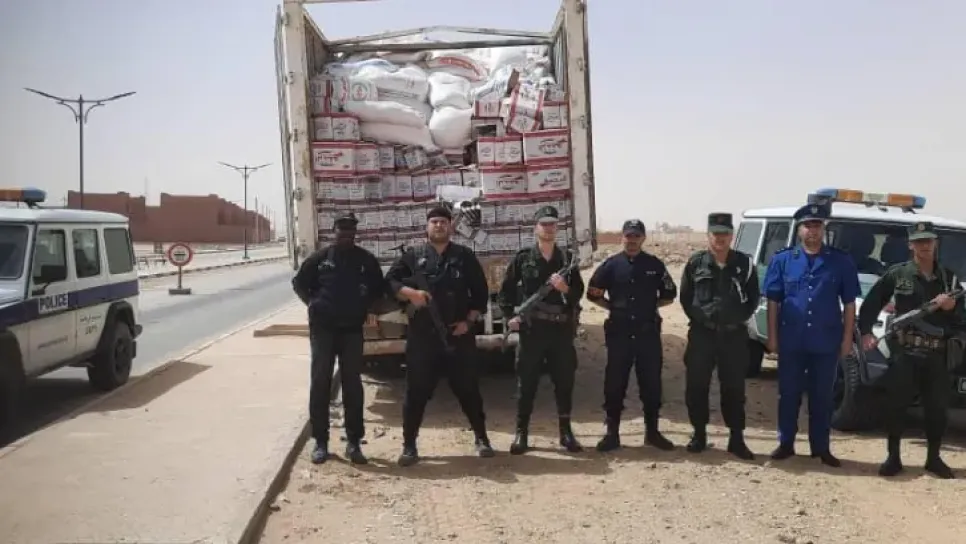 تمكنت مصالح أمن ولاية برج باجي مختار في عملية مشتركة مع الدرك الوطني ومصالح التجارة لولاية برج باجي مختار، من توقيف شاحنة من نوع MAN حيث وجدت على متنها 26 طنا و710 كلغ من المواد الغذائية المدعمة كانت موجه للتهريب، وقد أسفرت هذه العملية على حجز 258 كيس من مادة الدقيق من القمح اللين 'فرينة'، سعة الكيس الواحد 50 كلغ بإجمالي وزن 12.9 طنا، و400 كيس من مادة السكر، سعة الكيس الواحد 25 كلغ بإجمالي وزن 10 أطنان، و180 علبة كارتونية من عجائن 'سباغيتي'، سعة العلبة الكارتونية الواحدة 10كلغ بإجمالي وزن 1.8 طن، بالإضافة إلى201 علبة كارتونية من عجائن "مقارون" بإجمالي وزن 2.01 طن، كما تم العثور خلا...