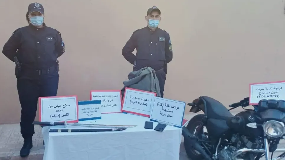 نجح أفراد الشرطة للأمن الحضري السابع بأمن ولاية بشـار، في وضع حد لنشاط مشتبه به اقترف عديد الأفعال الإجرامية تتعلق بسرقات بالخطف للحقائب اليدوية والهواتف النقالة بإستعمال وسيلة نقل والتهديد بواسطة سلاح أبيض.حسب ما أشارت إليه خلية الإتصال والعلاقات العامة لأنني ولاية فإن وقائع القضية تعود لتسجيل فرقة الشرطة القضائية للأمن الحضري 07، قضيتي سرقة بالخطف تحت طائلة التهديد بواسطة سلاح أبيض (سكين)، ضد شخصين مجهولين كانا على متن دراجة نارية، أين بينت التحريات أن أوصاف المشتبه بهما تتطابق بين القضيتين، عليه، تمَّ إعداد خطة أمنية محكمة بتكثيف الدوريات عبر مختلف الشوارع والأحياء وترصد تحركات الأشخاص المش...