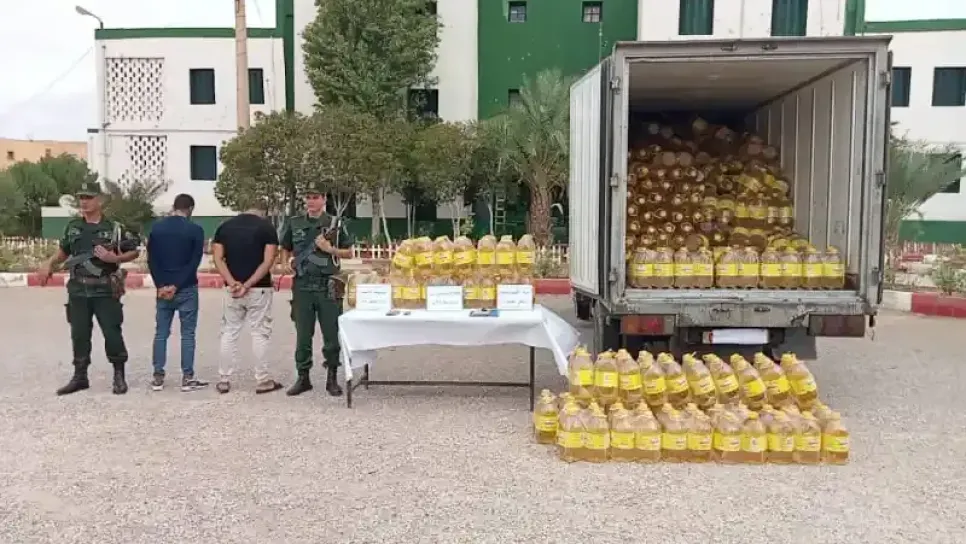 تمكن أفراد الفرقة الإقليمية للدرك الوطني بالعوينات ولاية تبسة، من حجز كمية معتبرة من زيد المائدة كانت موجهة للمضاربة. وأفاد بيان لمصالح الدرك الوطني بتبسة، أنه تم توقيف شخصين "ل.ب" يبلغ من العمر 36 سنة. و "ل.ج" يبلغ من العمر 34 سنة، بتهمة المضاربة في مواد غذائية مدعمة. كما مكنت العملية من حجز 1100 وحدة من مادة زيت المائدة من سعة 05 لتر بمجموع 5500 لتر، هواتف نقالة، بالإضافة كذلك إلى الشاحنة المستعملة في نقل البضاعة، ليتم بعدها تحرير ملف قضائي وتحويل المشتبه فيهما أمام العدالة.