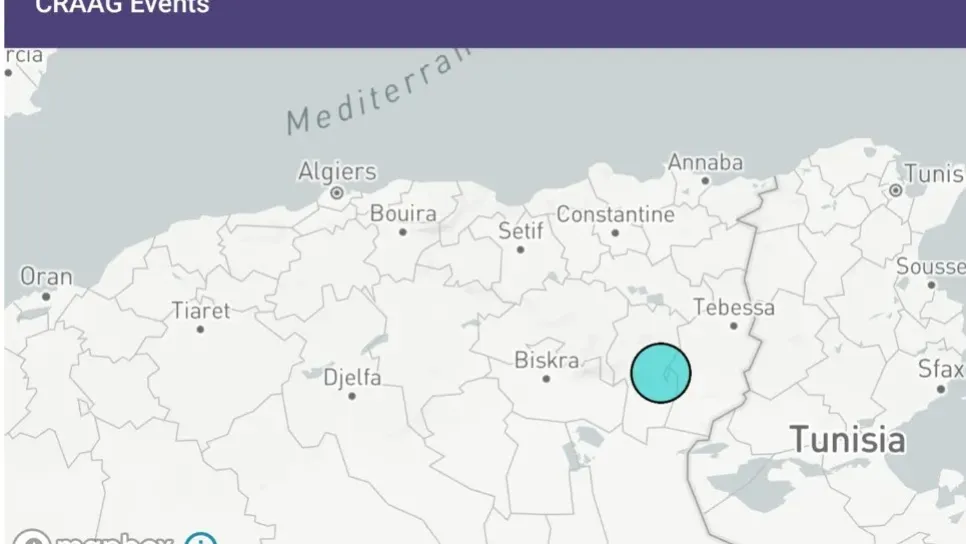 سجل ، اليوم الخميس ، مركز البحث في علم الفلك والفيزياء الفلكية والفيزياء الأرضية، هزتين أرضيتين بولاية تبسة .