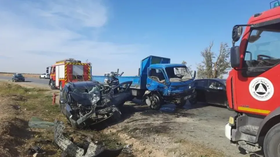 أعلنت خلية الإعلام والاتصال التابعة للمديرية الولائية للحماية المدنية بسيدي بلعباس صباح يوم الأحد عن إصابة تسعة أشخاص بجروح متفاوتة أثر حادثي مرور منفصلين ما استدعى تدخلا عاجلا لاعوان مختلف الوحدات الذين تكفلوا بتقديم الإسعافات ونقل الجرحى صوب المؤسسات الاستشفائية. وكانت أثقل حصيلة قد سجلت في حدود الساعة التاسعة وعشر دقائق بالطريق الوطني رقم 13 في شطره المار باقليم بلدية العمارنة غير بعيد عن قرية بلولادي أين تسبب اصطدام عنيف لشاحنة بسيارتين سياحيتين في إصابة سبعة أشخاص بجروح متفاوتة الخطورة منهم ثلاثة في حالة حرجة ما عجل بتحويلهم من قبل أعوان الوحدة القطاعية "نوال بن موسى" بدعم من أفراد الوحد...