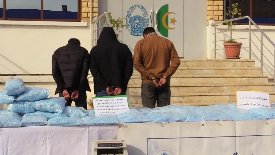 تمكنت مصالح شرطة الحدود البحرية بميناء وهران بالتنسيق مع مصالح الجمارك من تفكيك شبكة إجرامية تختص في الاتجار غير الشرعي بالمؤثرات العقلية مع حجز 340 ألف قرص مهلوس وتوقيف ثلاثة أشخاص مشتبه بهم. وأوضح بيان للمديرية العامة للأمن الوطني، اليوم الخميس، أن تفكيك هذه الشبكة الإجرامية التي "يمتد نشاطها عبر الحدود"، تم بالتنسيق بين "مصالح شرطة الحدود البحرية بميناء وهران ومصالح المراقبة لجمارك ميناء وهران وتحت إشراف فرقة مكافحة المخدرات للمصلحة الولائية للشرطة القضائية بأمن ولاية وهران". وقد أسفرت العملية عن "توقيف ثلاثة أشخاص مشتبه تورطهم في القضية تتراوح أعمارهم ما بين 31 و33 سنة من بينهم شخص معتاد...